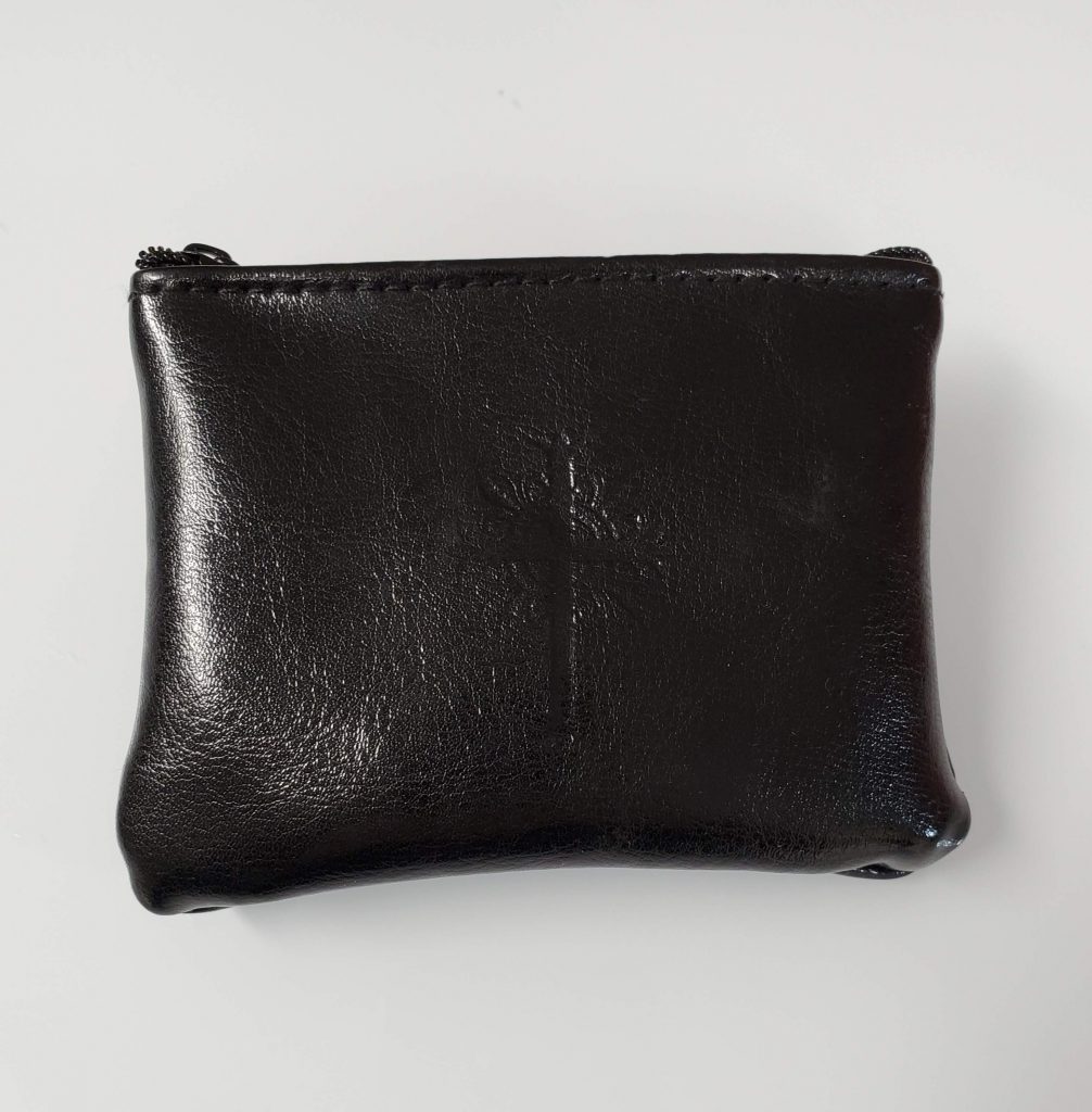 Protect your treasured prayer instrument in this rosary case made of genuine leather with embossed cross. This sturdy case will make carrying your rosary simple and eliminate tangles of the chain or beads.