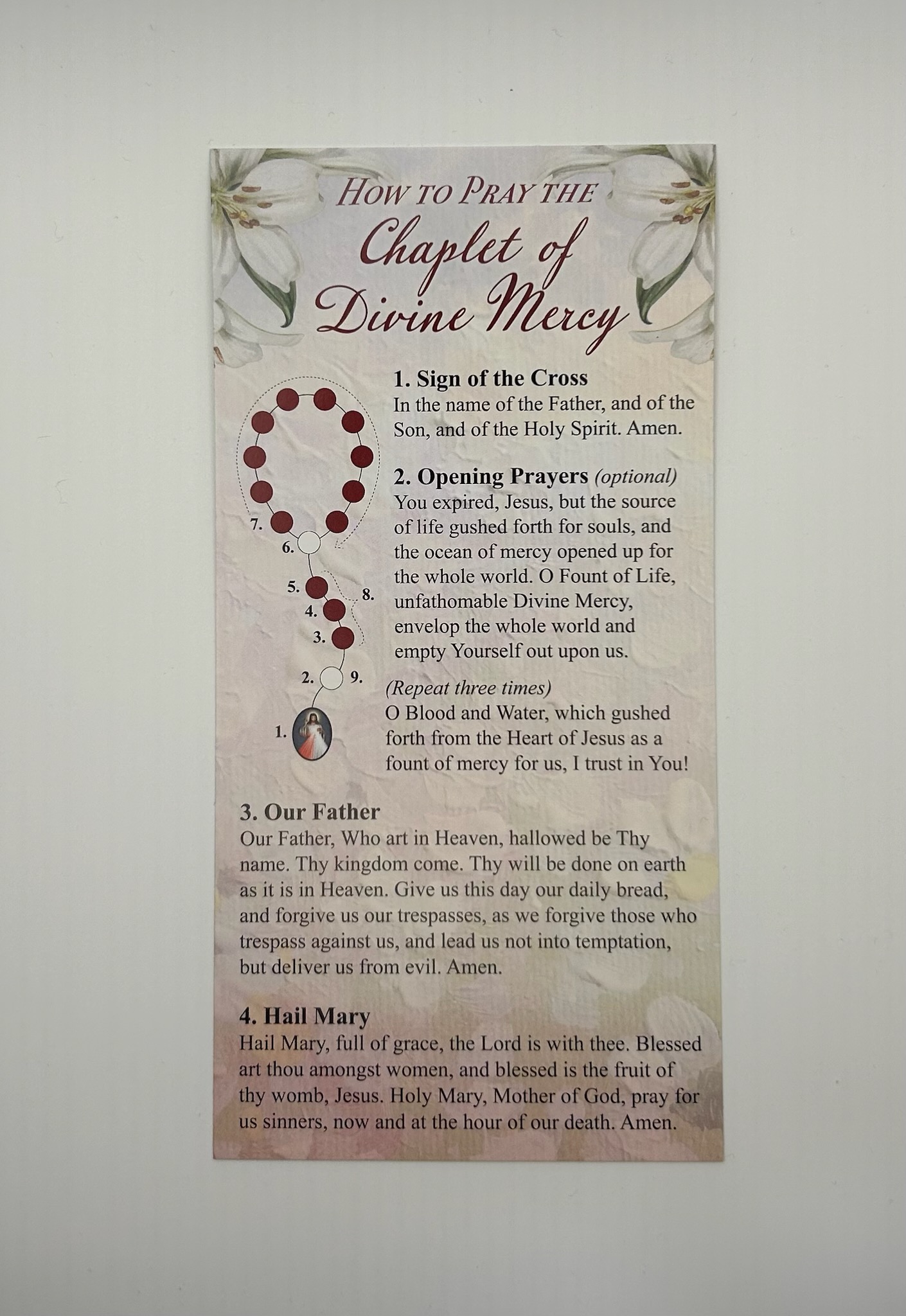 How to Pray the Chaplet of Divine Mercy Prayer Card