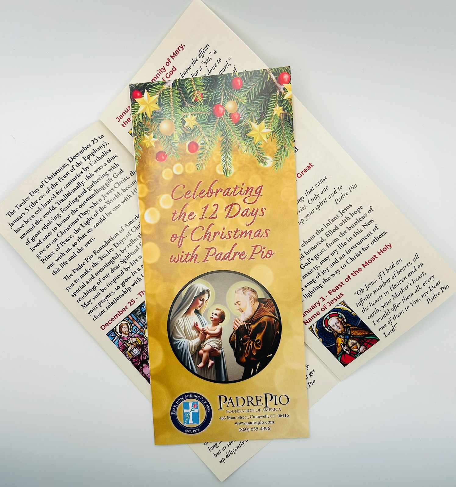 A beautifully redesigned tri-fold prayer pamphlet featuring 12 days of guided prayers leading up to Christmas day.