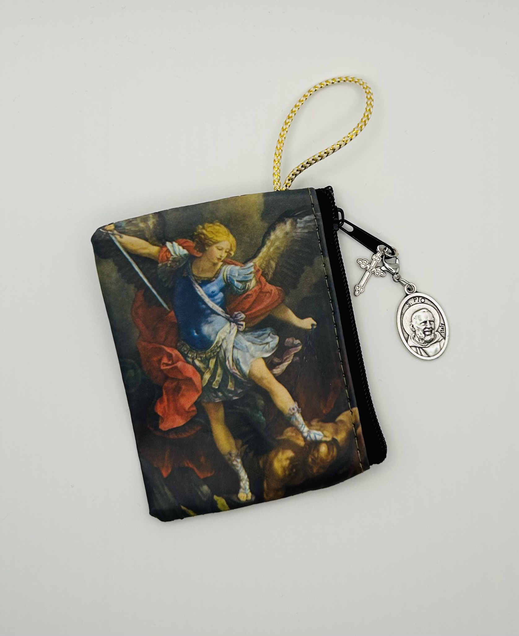 A beautifully crafted Saint Michael Rosary Case featuring a cross and a Padre Pio “Pray for Us” medal. Designed to protect your rosary while serving as a powerful reminder of faith, courage, and intercession. A meaningful devotional piece for daily prayer or a thoughtful Catholic gift.