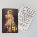 Wallet-sized prayer cards with gold accents and an embossed gold emblem. Choose from Saint Anthony, Divine Mercy, Holy Spirit, Immaculate Heart of Mary, Holy Family, Infant of Prague, Saint Joseph, Memorare, Saint Michael, Saint Peregrine, Saint Pio, and Saint Rita.